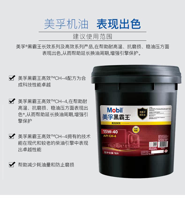 Mobil Black Bawang Эффективное CH-4 15W-40 световая карта тяжелая карта Синтетическая чай масла Электрическое масло 18L