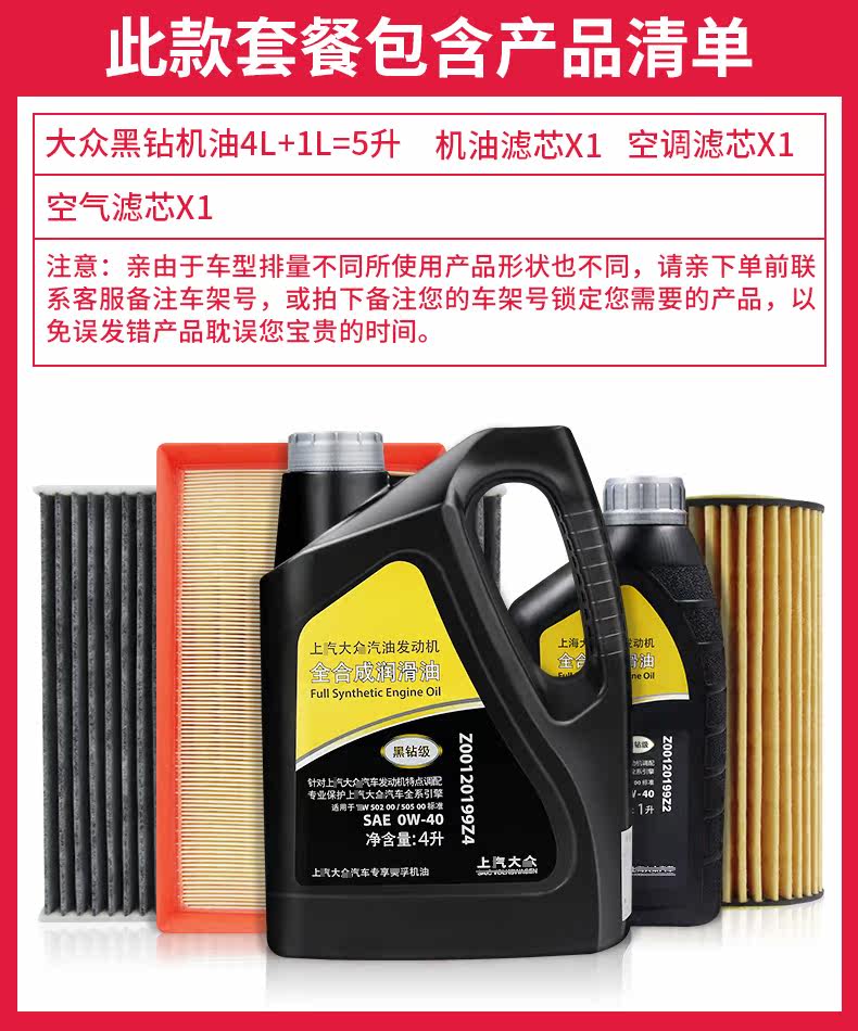 Применимо к Volkswagen New Passat Tiger Tiguan Land 0W-40 Black Diamond Oil Смазка Три фильтра 1,8T2.0T набор