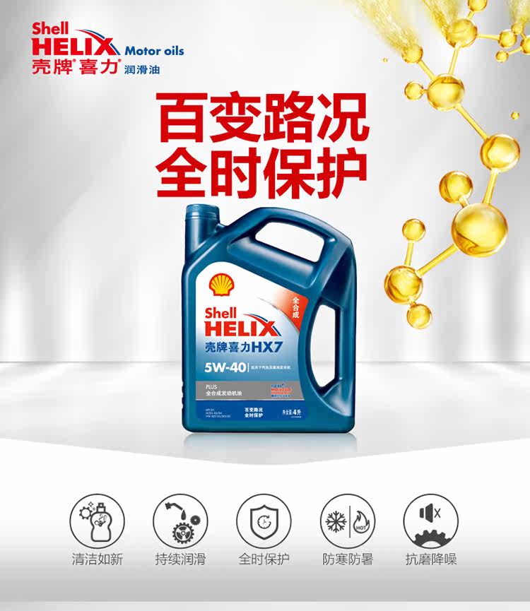 Shell Xili Oil Blue Shell HX7 Полная синтетическая автомобильная смазка двигателя 5W40 SN Plus 4L