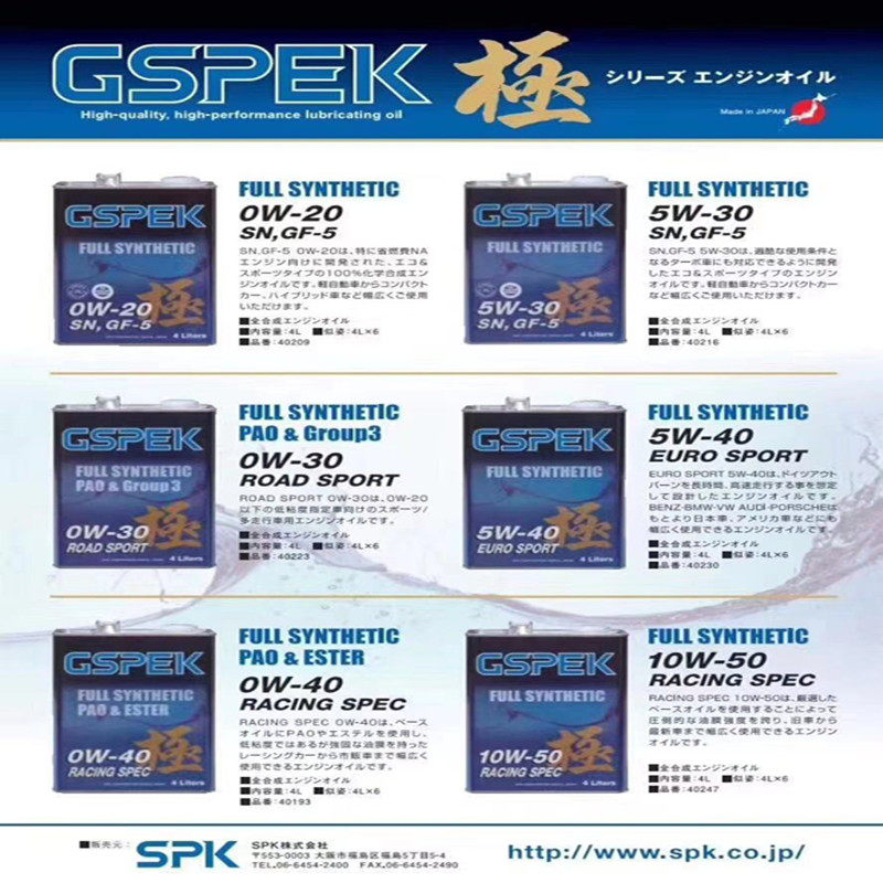 Немецкие выписки-турбины конкурентоспособные гонки Спецификация Япония Gspek Polar Высокопроизводительное моторное масло 0W-40 4L