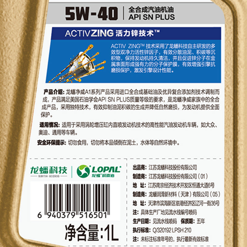 Бензиновая моторная масло Длинное расстояние Jingwei A1 Полностью синтетический SN плюс 5W-40 1 л Полностью синтетическое моторное масло