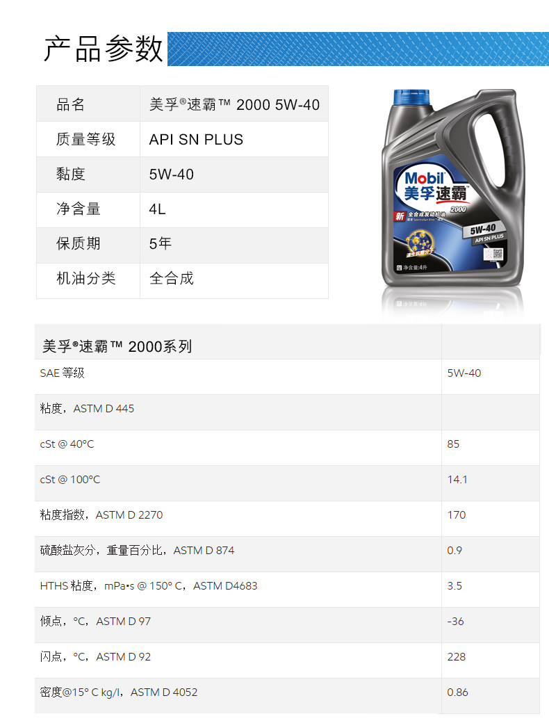 Mobil Mobil Speed 2000 Полное синтетическое масло масла 5W-40 Автомобильная смазочная смазка SN Class 4L