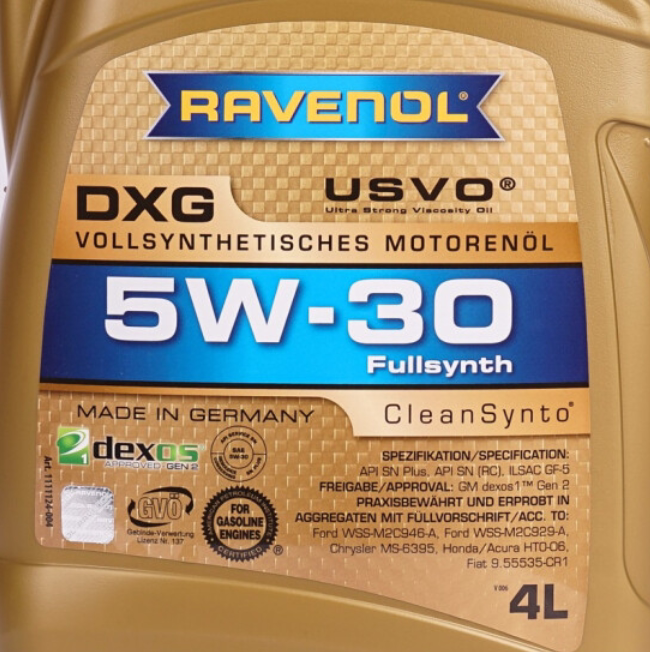 Германия Ravenol DXG 5W-30 USVO Fighting 4+5 Категория полного синтетического машины масла 5W30 4L Fengravino