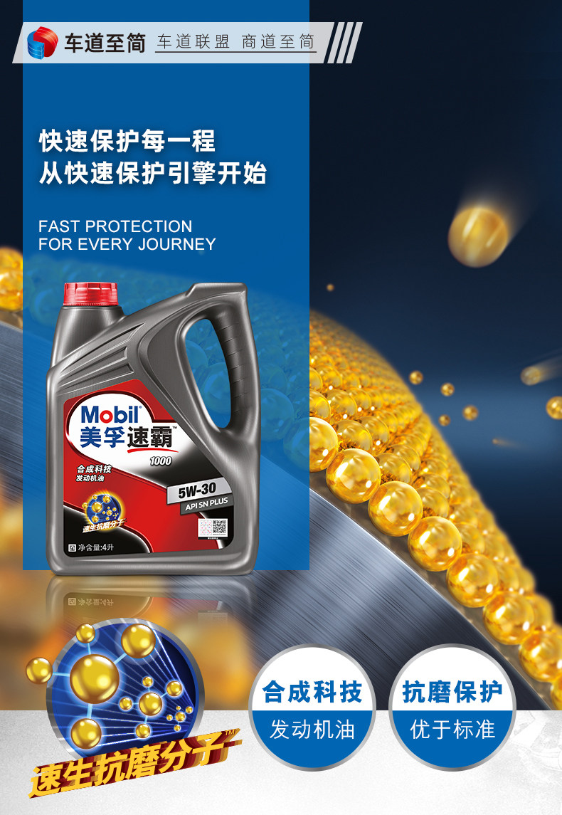 Mobil Speed 1000 Полусинтетический SN-Class 5W-30 ДВИГАТЕЛЬНЫЙ Масло четыре сезона Автомобильное масло 4L