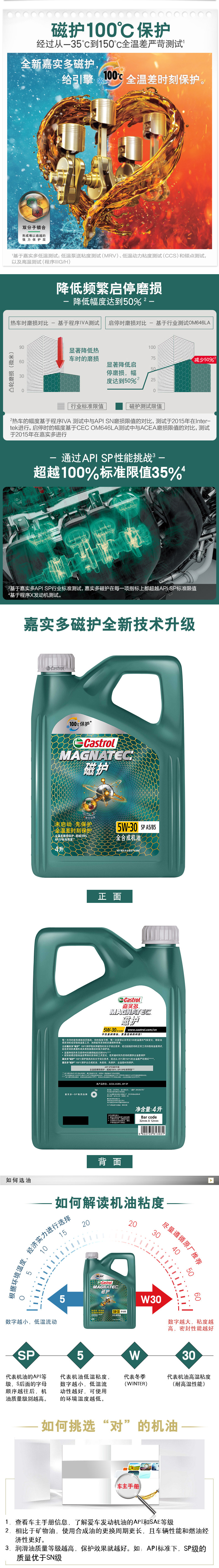 Недавно модернизированное официальное кастрильное магнитная защита SQ 5W-30 4L Полностью синтетическое смазочное масло моторного масла