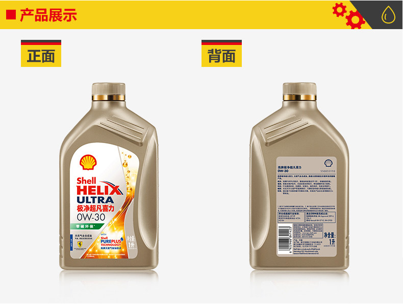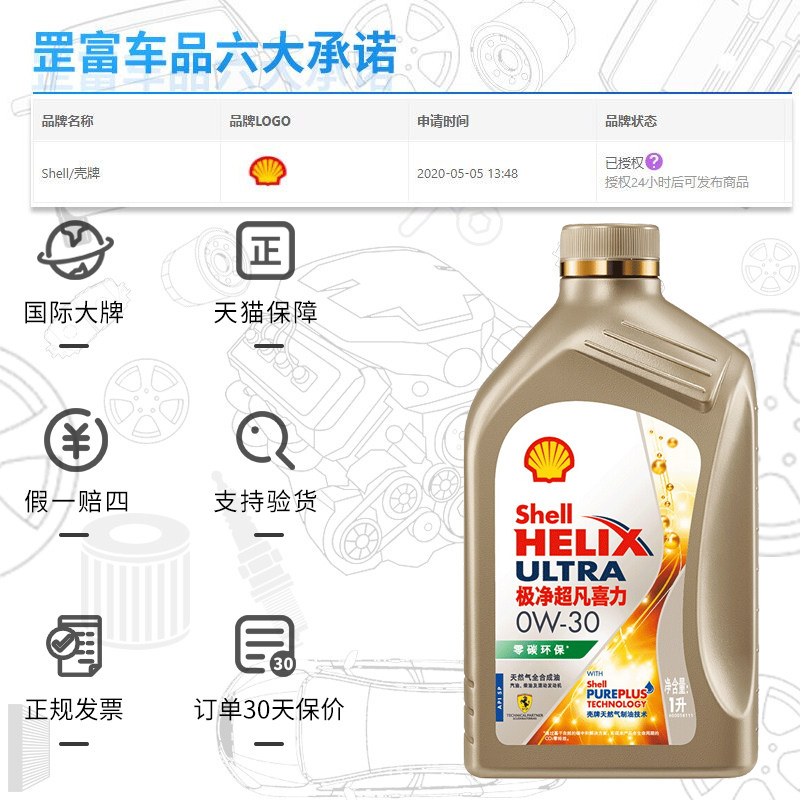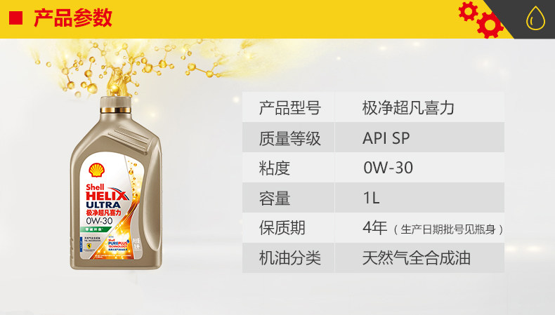 Shell Oil Gold Gold, чрезвычайно Super Power 0W30 Полная синтетическая масла Высокая производительность смазки золотой оболочки 1L SP Инсталляция SP