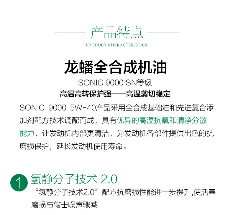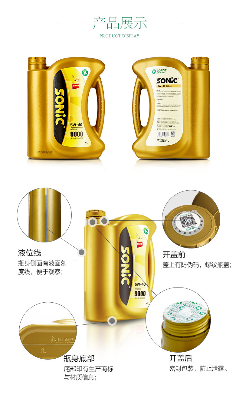 龙蟠 Sonic9000 Полный синтетический бензиновый масляный автомобиль смазочный нефть SN 5W-40 1L