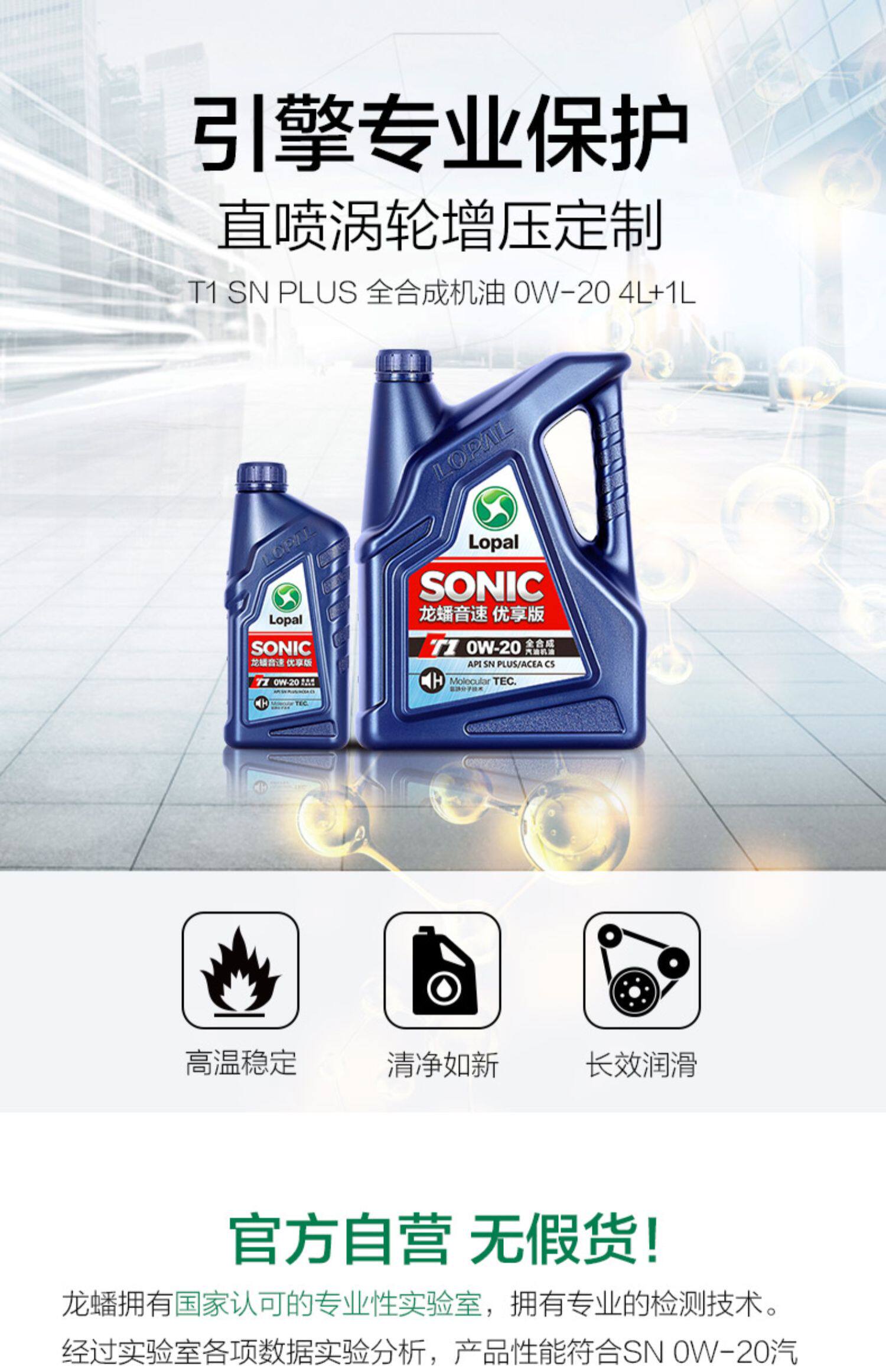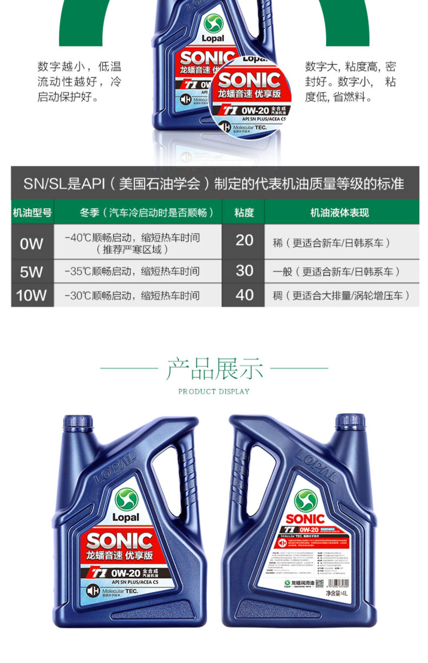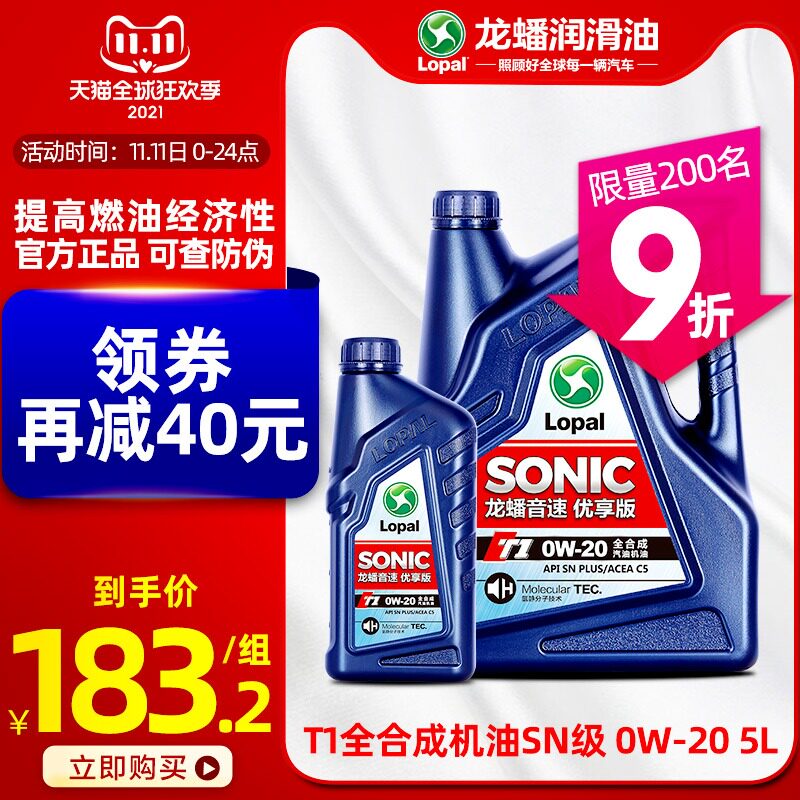 Dragon Sonic T1 0W-20 Полная синтетическая машина масла Snplus Двигатель смазка 5L