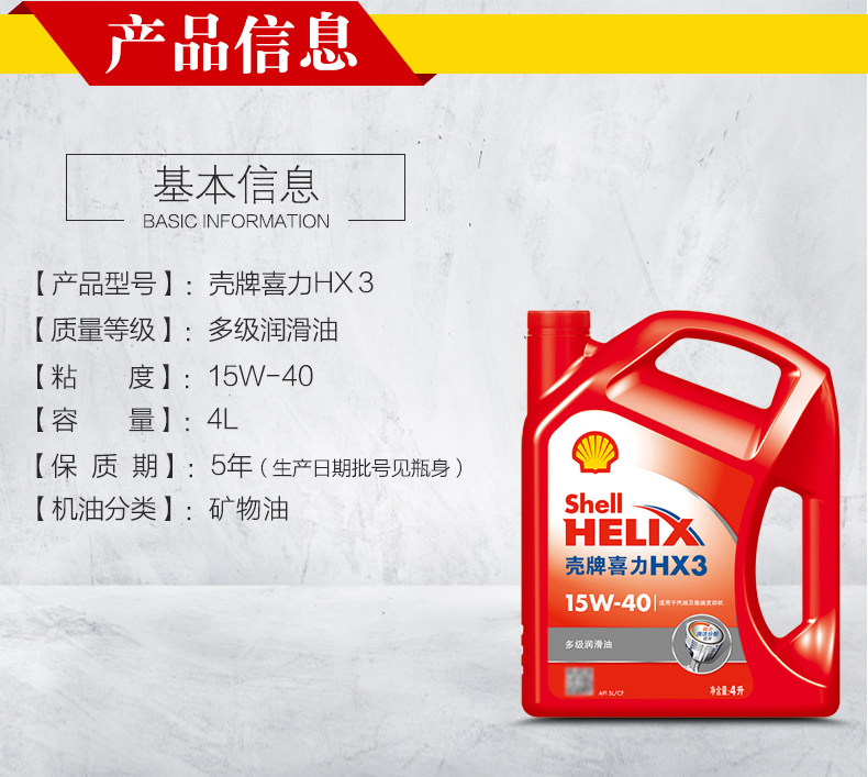 Оболочка красная оболочка XILI HX3 Масло масла 15W-40 Бензиновый дизельный двигатель общий двигатель общий двигатель SL/CF класс 4L