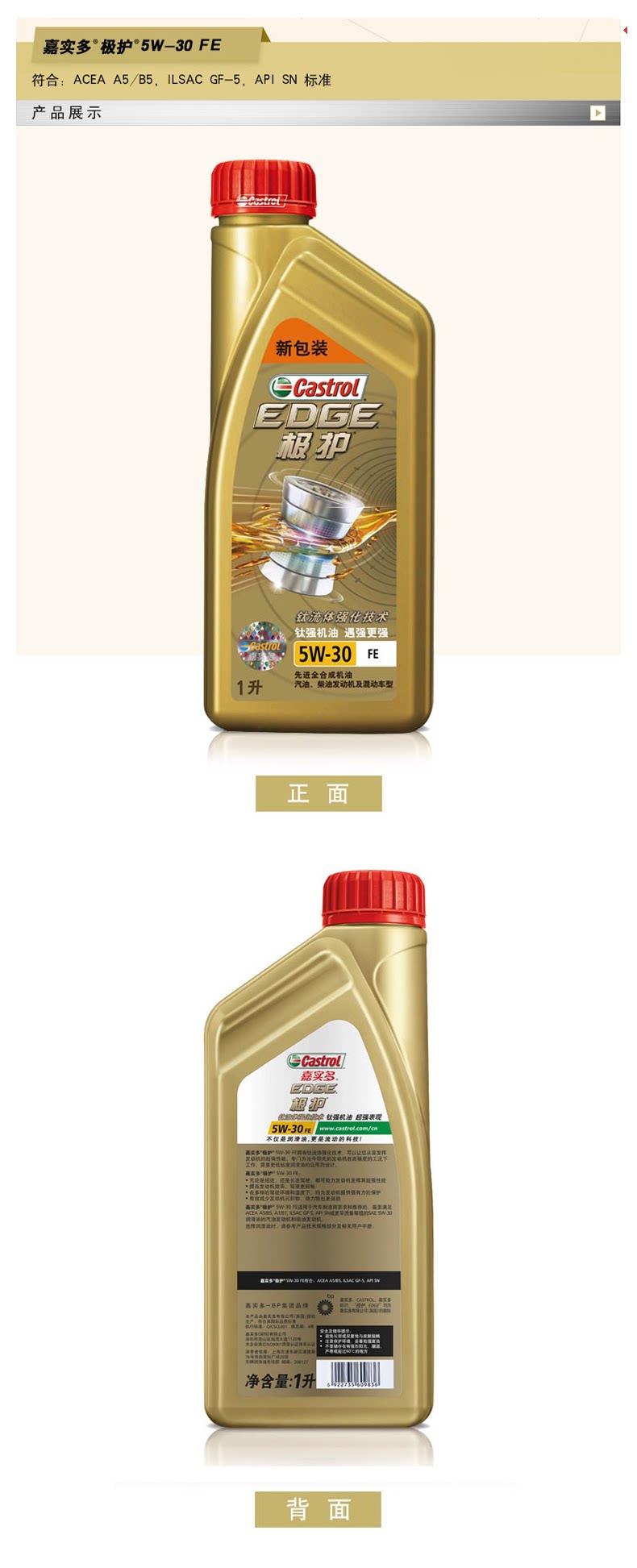 Кастрол масла экстремальная титановая жидкость Полностью синтезированное моторное масло 5W-30 Fe для Jaguar Land Rover Aurora 1L