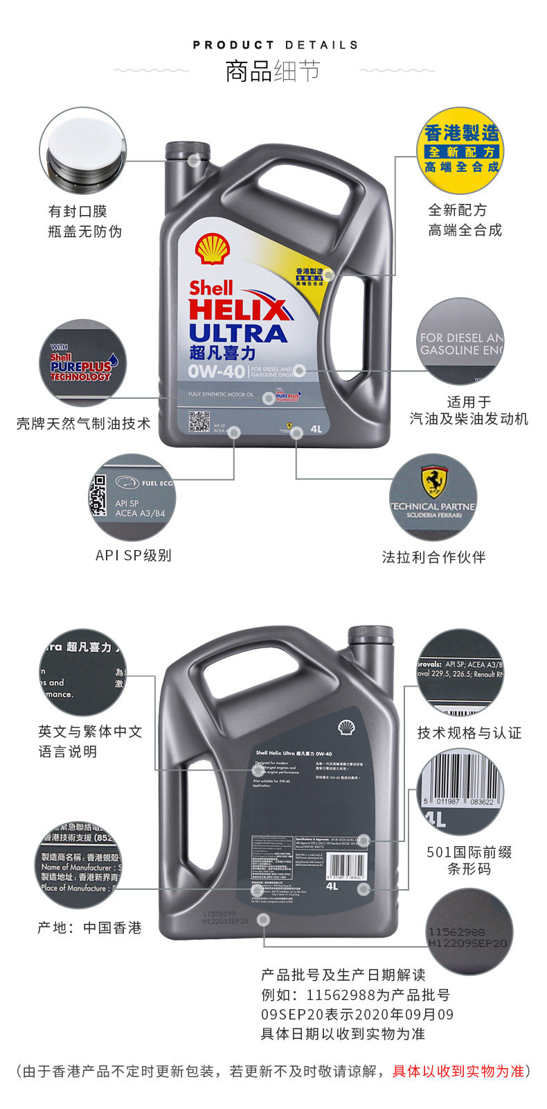 [Самозанятая] Оболочка-это необычная серая радость 0W-40 серая оболочка Sp Гонконг Полный синтетический моторный масло 4L Загружено*2 бочки