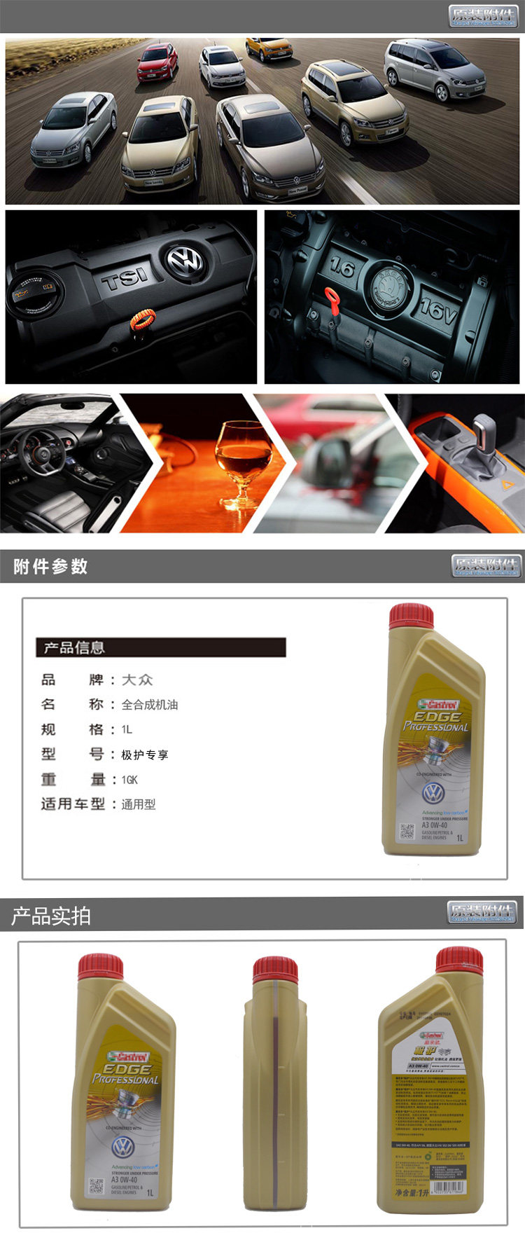 Адаптирован к импортированному Volkswagen Charlite Mattwick Golf Golf Lang Consor 0W40 Полностью синтетическое смазочное масло