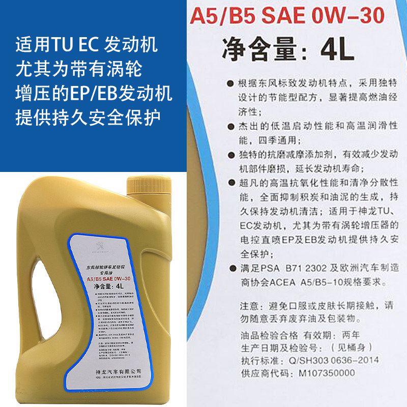 Адаптироваться к логотипе Peugeot A5B5 308 408 307 3008 301 0W30 Оригинальное полностью синтетическое моторное масло 2008