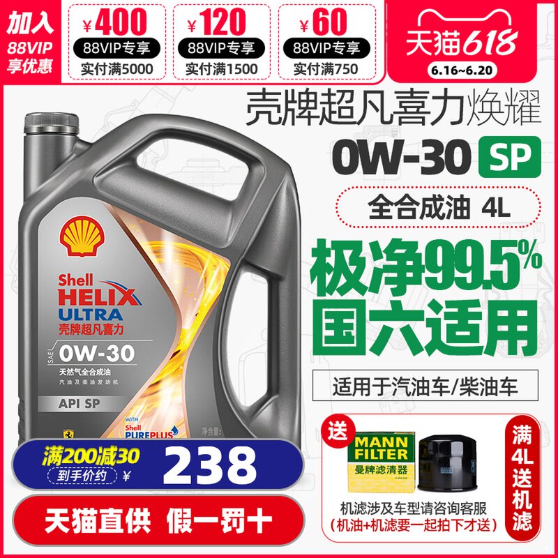 Подлинное оболочкое машинное масло 0W30 Super Fuli SP Полное синтетическое масло GF-6A National 6 Бензиновое смазочное масло 4L
