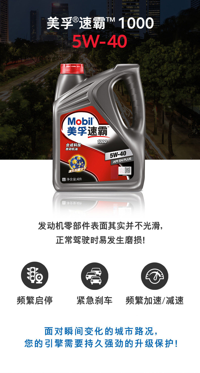 Mobil Mobil Speed 1000 Моторное масло 5W40 Синтетическая технология Бензиновая моторная смазка 4L 4L