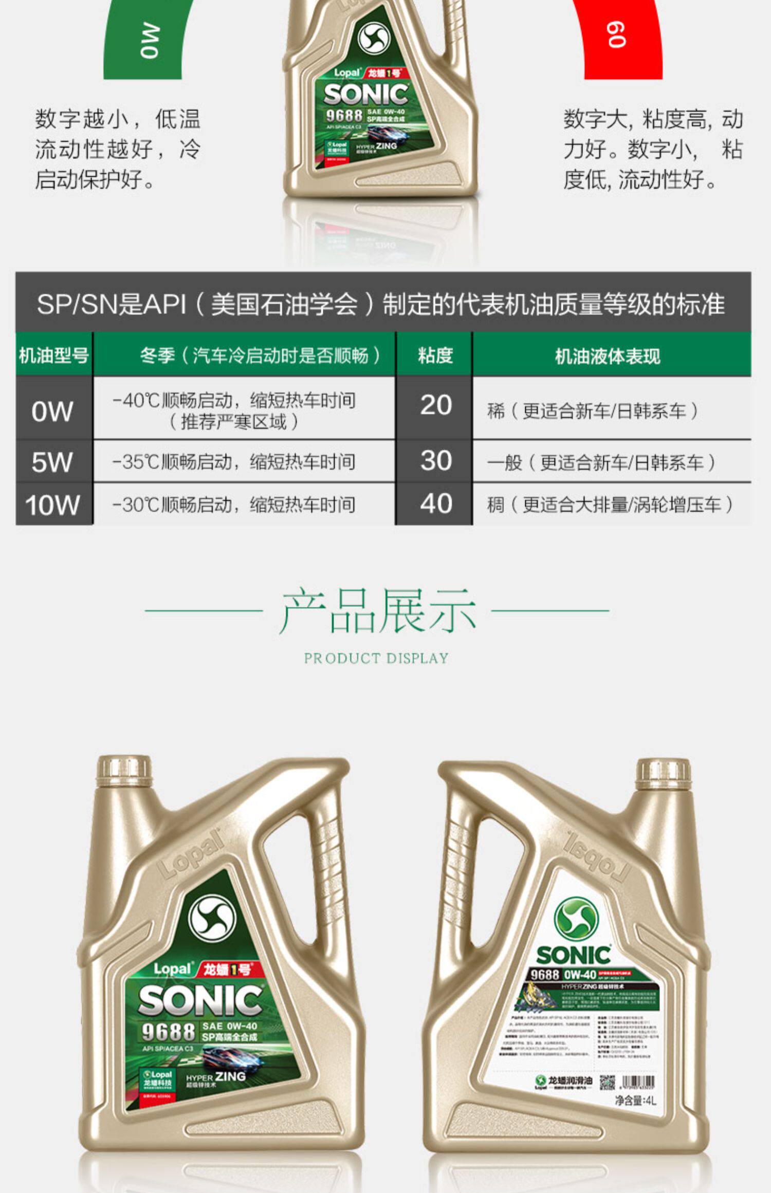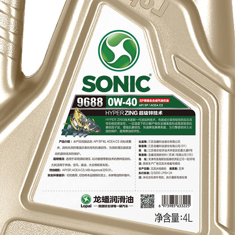 Бензиновое нефтяное нефть Longxuan № 1 Sonic9688 SP/ACEA C3 0W-40 4L Полное синтетическое масло