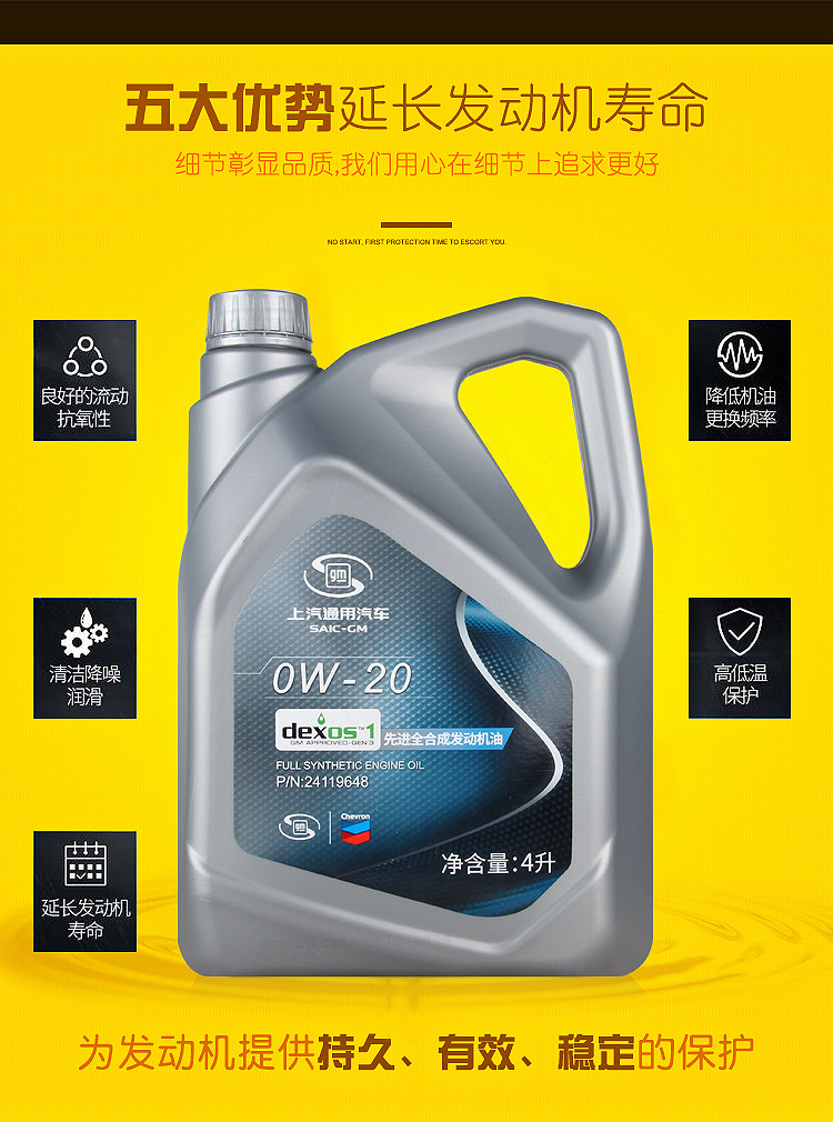 SAIC-GM Полное синтетическое моторное масло 0W-20 National VI, Yinglang, Encore, Malibu XL Оригинальное моторное масло 4L