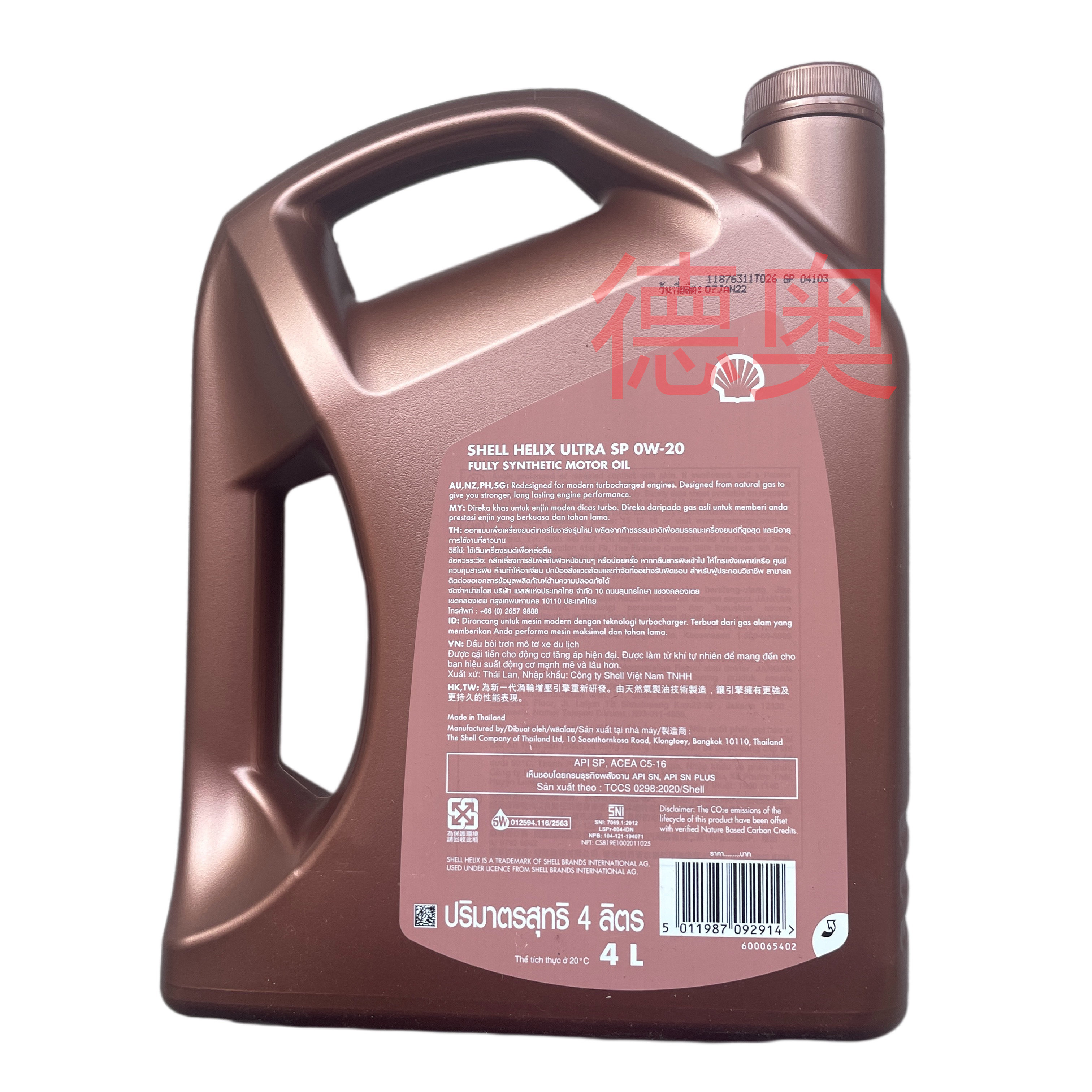 Импортированные раковины очень счастливы Ultra 0W20 SP/C5 CAR Смазочное масло SN 4L SN 4L