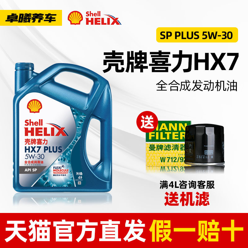 Shell Blue Shell Три поколения 5W-30 XILI HX7 Plus Полная синтетическая смазочная смазка 4L Установка API CAR CAR масла