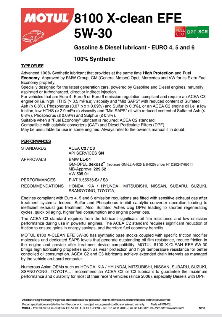Французский Motul 8100 X-Clean EFE 5W30 C2/C3 Эстер Эфир Полный синтез Моторный масло 5L