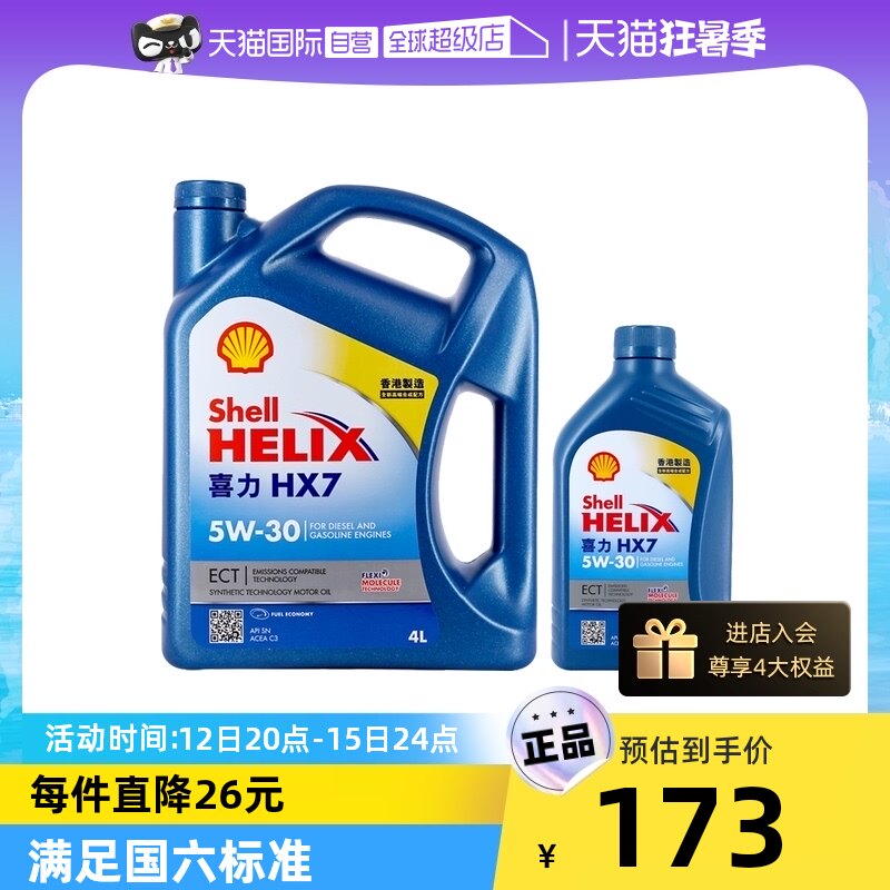 [Самозанятая] Shell Shell Blue Xili HX7 5W-30 4L+1L Blue Shell Гонконг Синтетическая технология масло