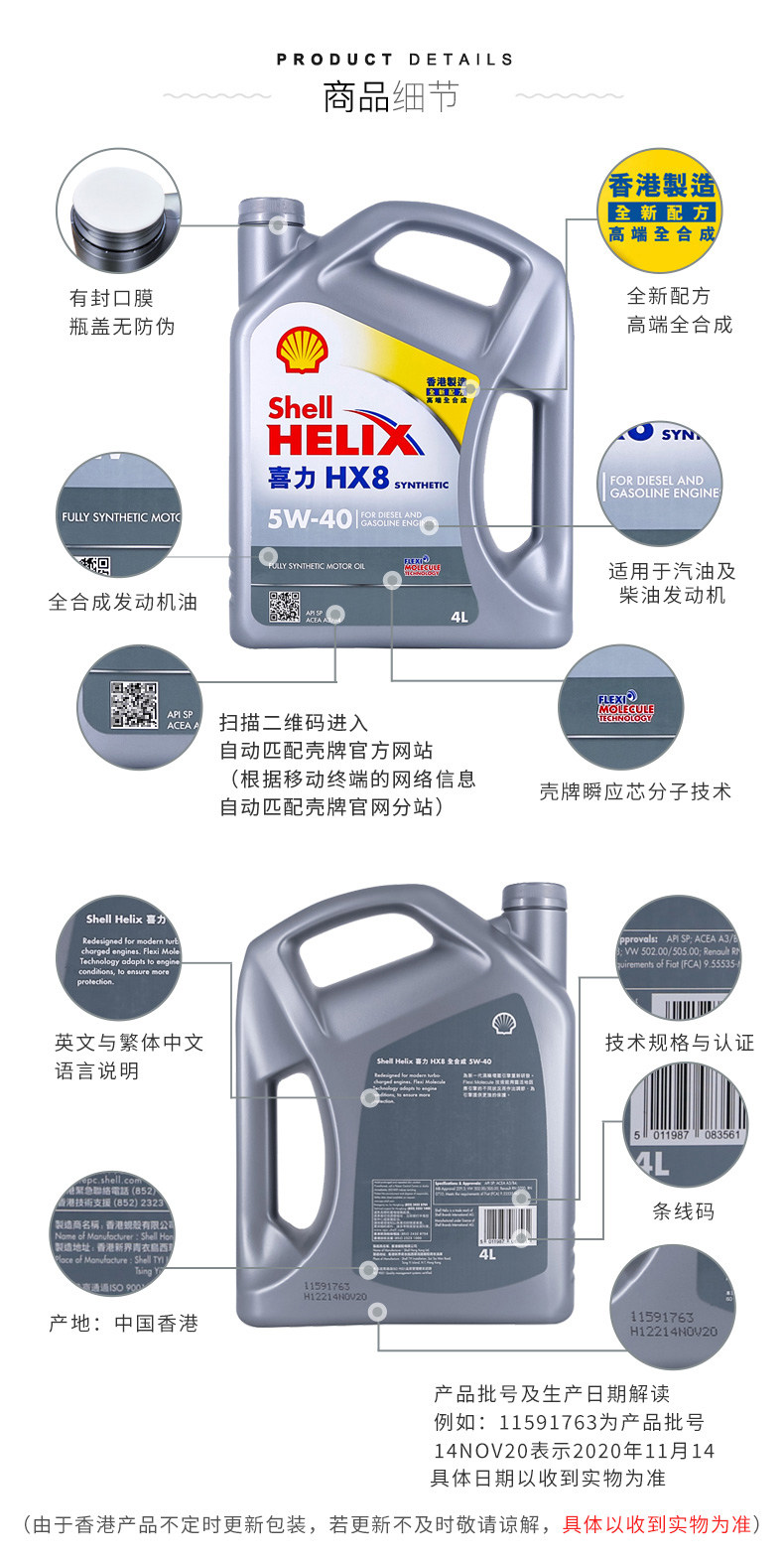 [Самозанятая] Оболочка HX8 5W-40 4L+1L Гонконг Маленькая серая оболочка SP Полный синтетический моторный масло