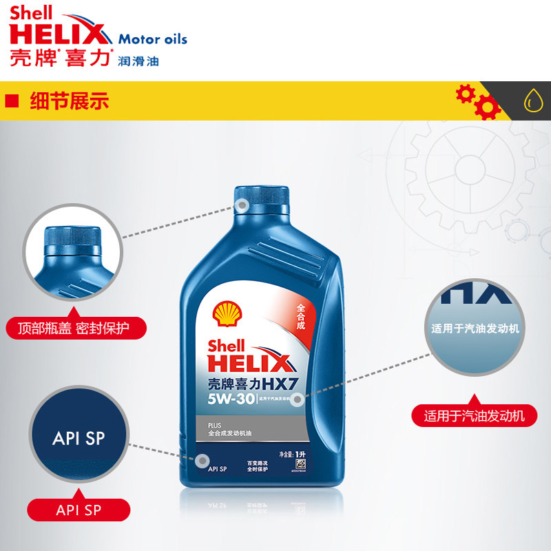 Shell xili Обновление синей оболочки HX7 CAR Техническое обслуживание полное синтетическое моторное масло 5W30 1L API SP