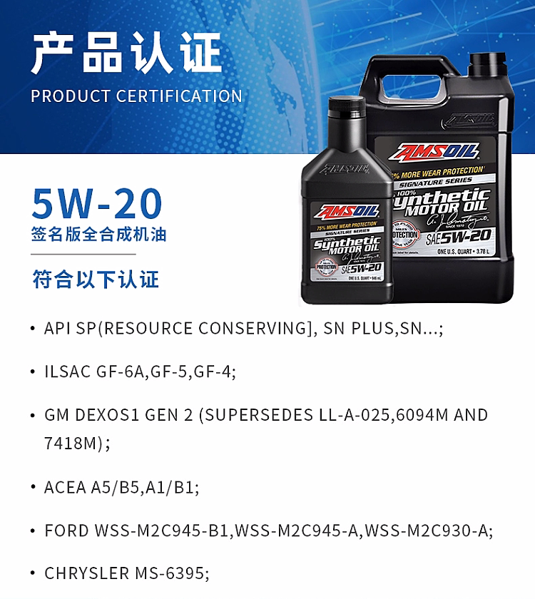 AMSOIL Signature Edition 5W-20 Полностью синтетическое моторное масло, подходящее для JEEPToyota Ford 5W20 National VI SP