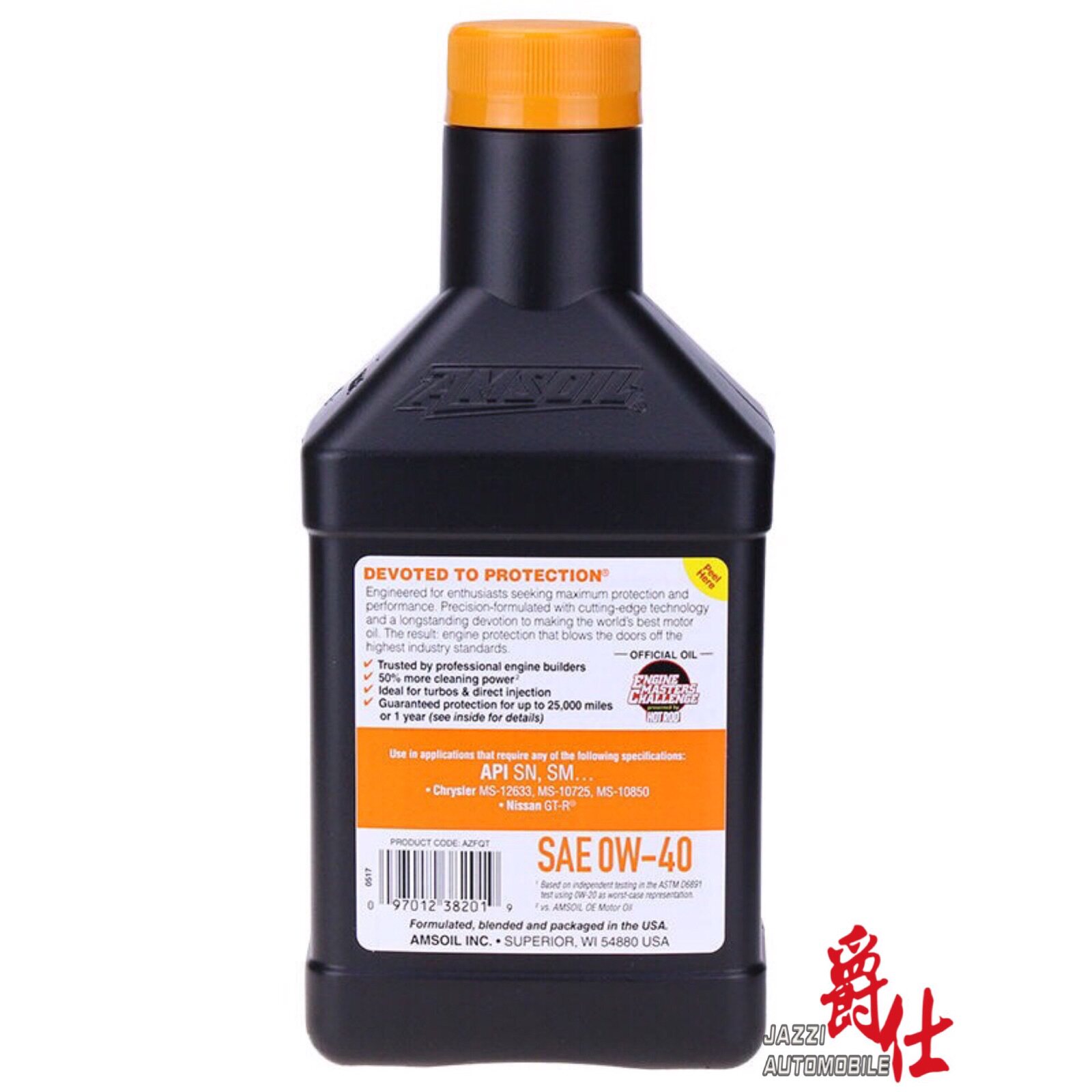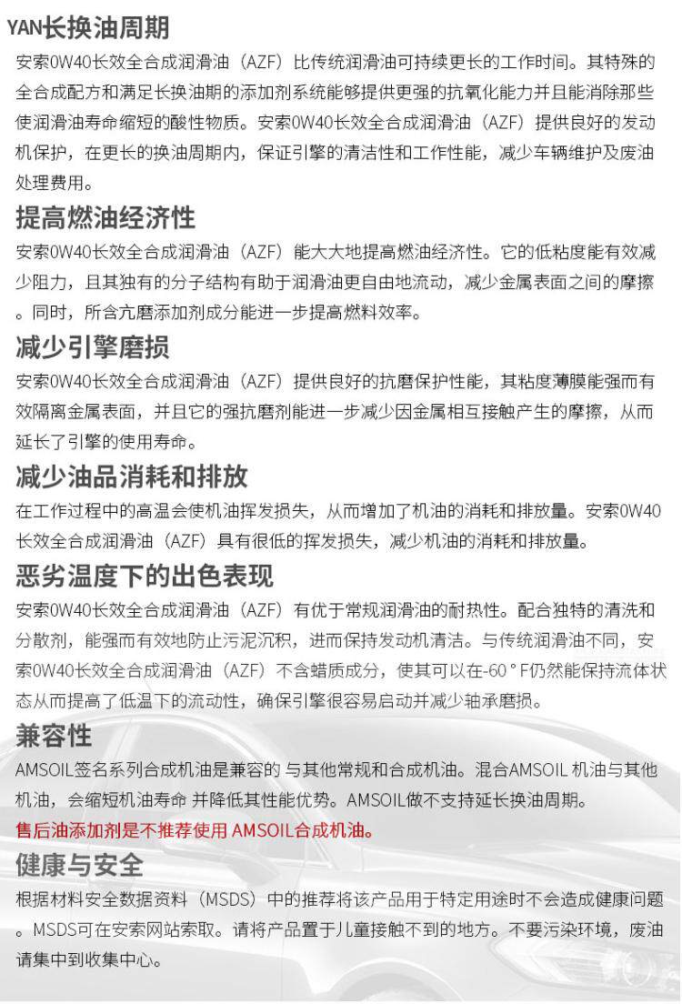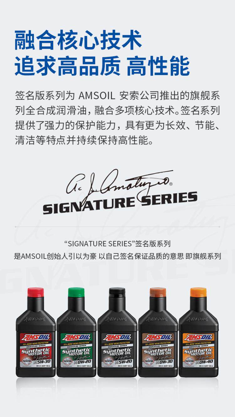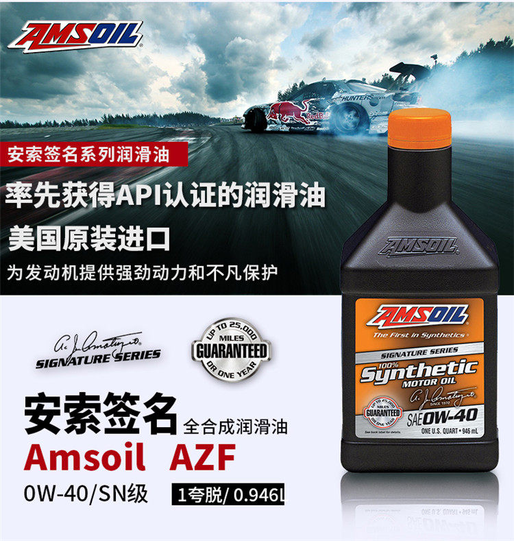 Американское моторное масло AMSOIL Signature Series AZF 0W-40 Silent, долговечное, полностью синтетическое, бесшумное моторное масло 0,946
