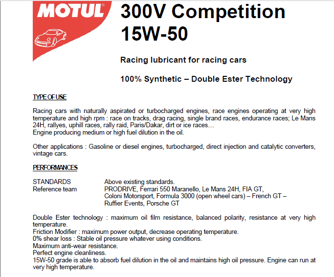 Motul 300V 15W50 Двойное сложное эфир Полный синтетический моторный масло 2L Rally Rally Endurance Raviom Power Новая версия