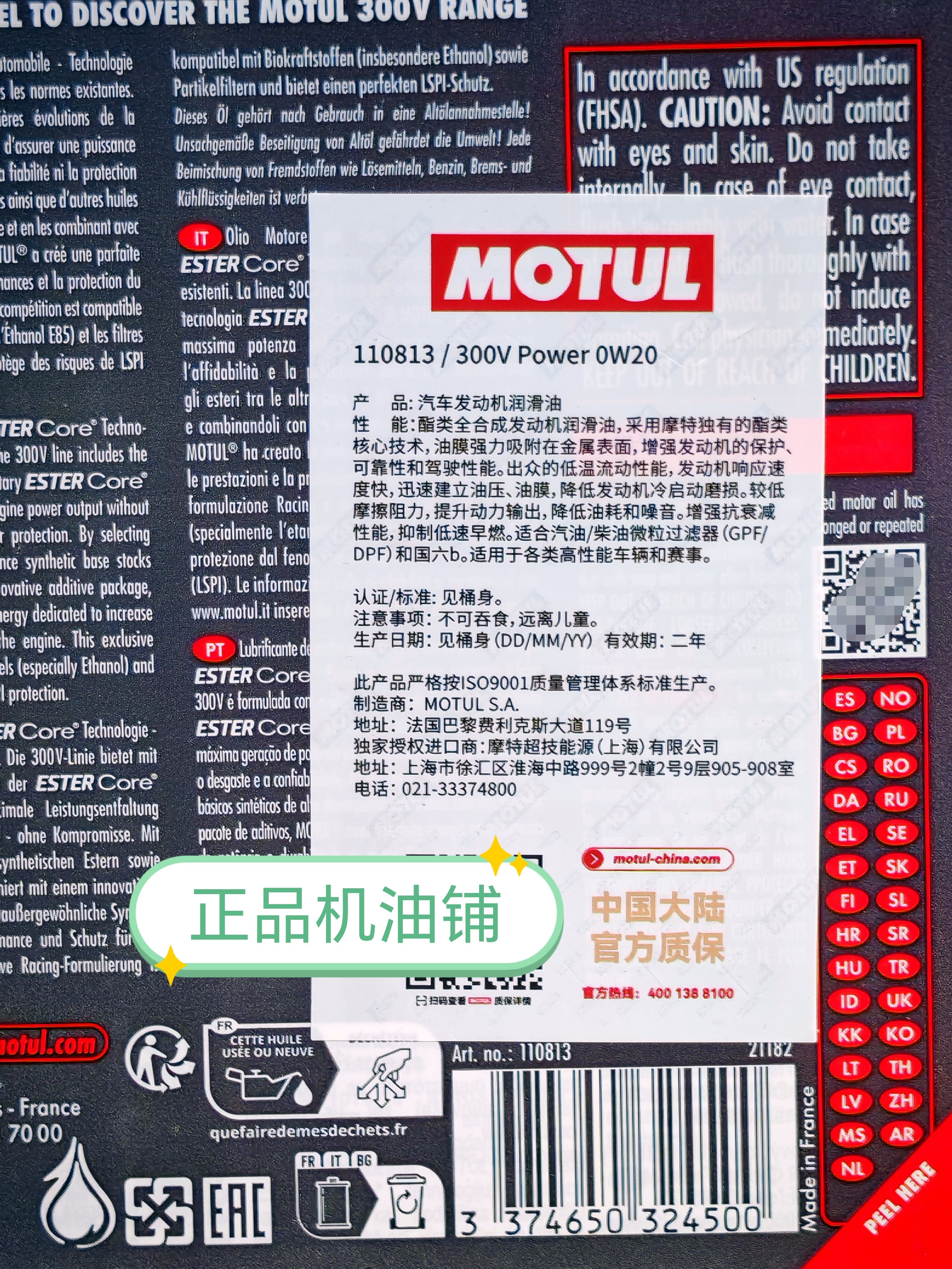 Mote 300V 0W20 0W30 0W40 5W30 5W40 National 6-эфирный полностью синтетический стандартный лицензированный ремень с защитой от подделок
