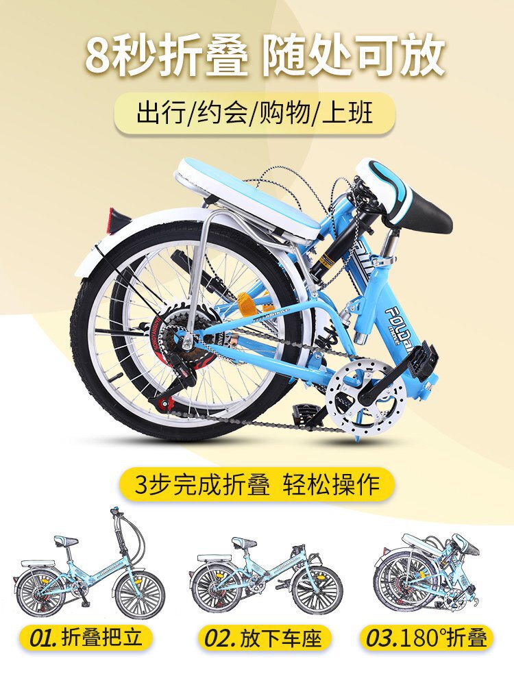 Складной сверхлегкий портативный велосипед с тормозной системой для взрослых, 20 скоростей