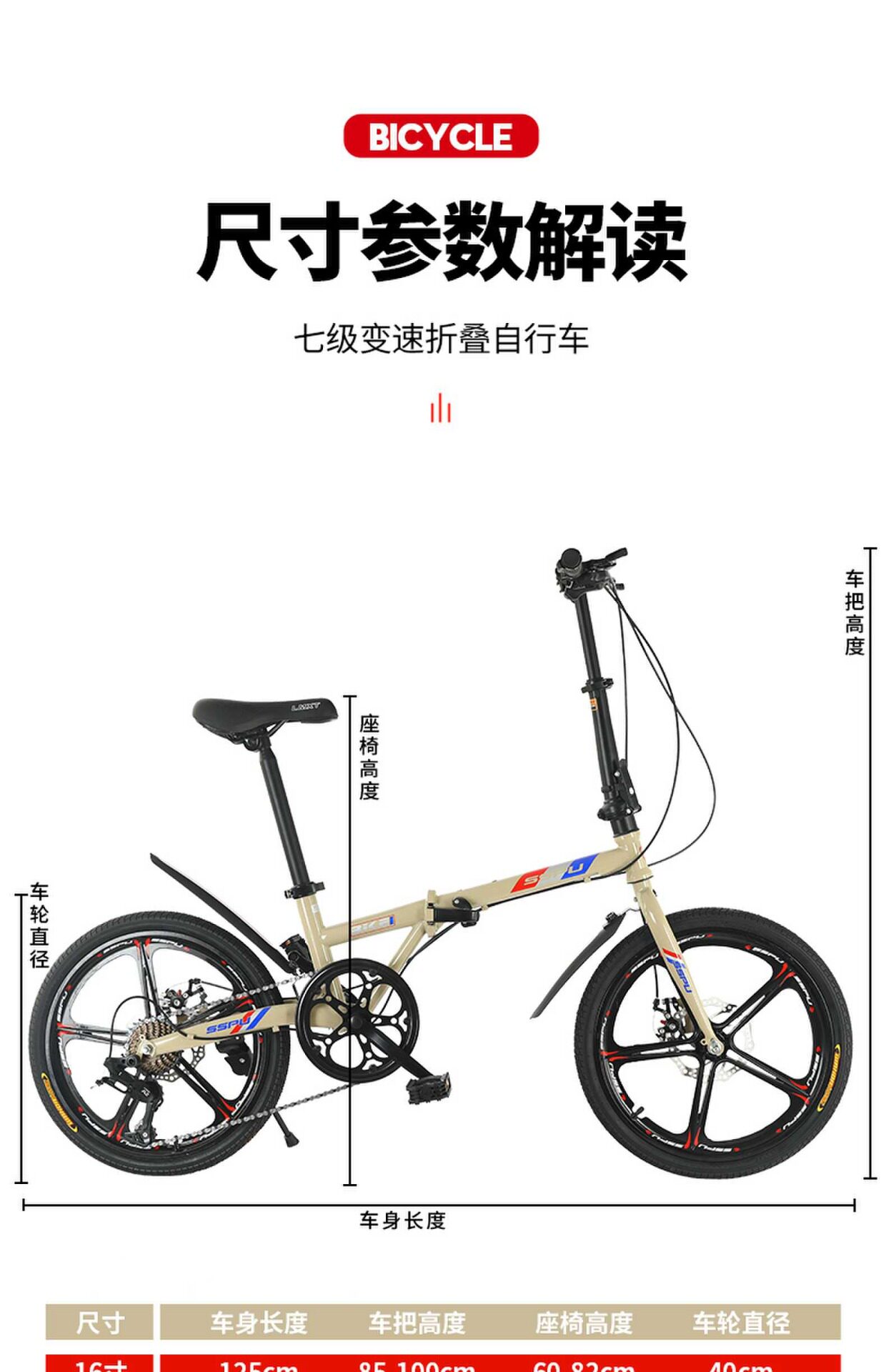 Складной портативный велосипед с дисковыми тормозами подходит для мужчин и женщин для школьников с маленькими колесами, 16 дюймов, подходит для подростков