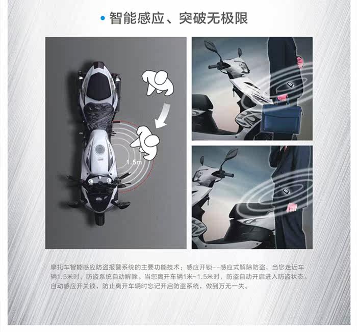 1,Мотоцикл начинается с одного щелчкаИнтеллектуальная индукционная система индукции PKE после того, как нормальная скорость находится близко к автомобилю 0,5-2 метра и 2 секунды, анти-кража автоматически выпускается, а весь автомобиль питается. НажиматьМотоцикл обрабатывает кнопку зажигания для достижения без ключазапускать.Нажмите пульт дистанционного управления, чтобы выпустить клавишу вручнуюОставьте машину после выключения2-3 метра 2-5Автоматическая защита противоугодного устройства через секунды, интеллектуальная и персонализированная.Встроенный динамик тревоги.