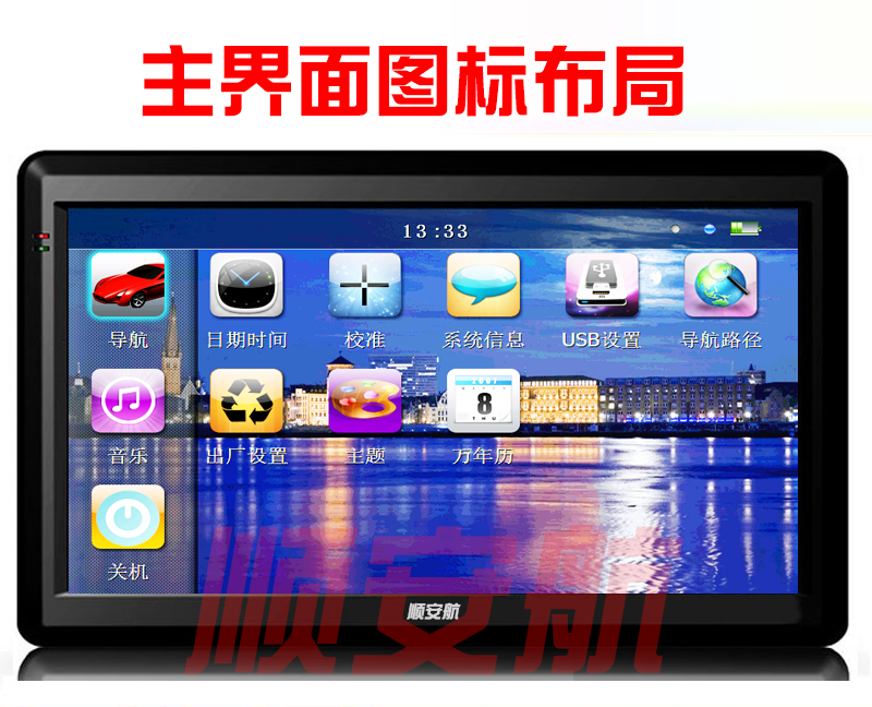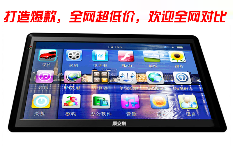 Основные функции удобного навигатора: навигация, измерение фиксированной скорости, электронные собаки, воспроизведение музыки, воспроизведение видео, запуск FM, мини -игра