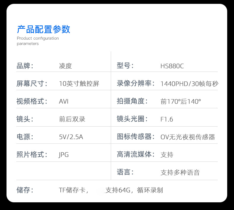 凌度 HS880C Driving Recorder Высокоопределение ночное видение до и после двойного переоценка потокового носителя.
