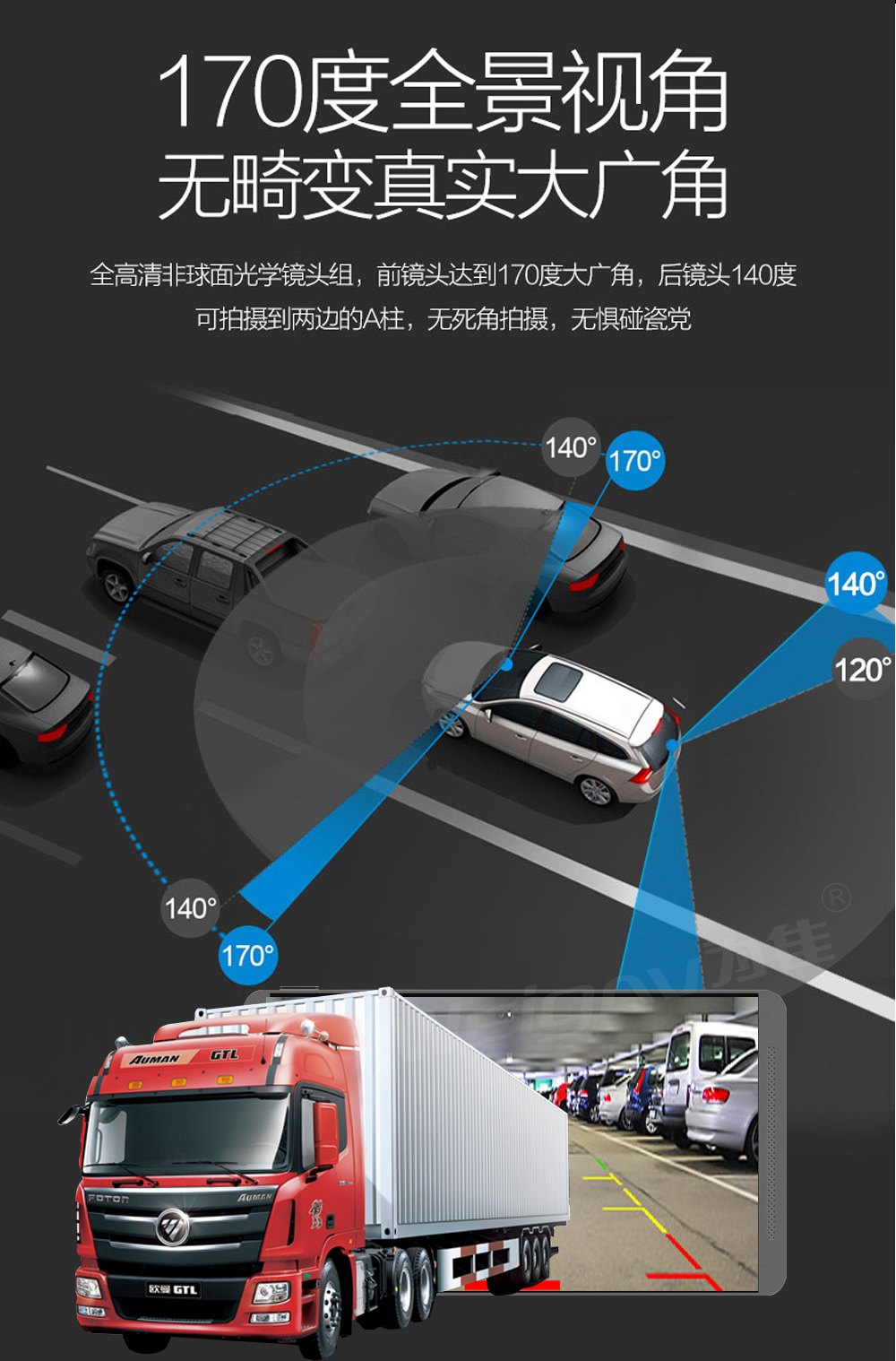 Навигационная навигационная навигация автомобильных грузовиков Инструмент Electronic Dog Reversing All -In -One Sound Control Bluetooth TV Dual Lens