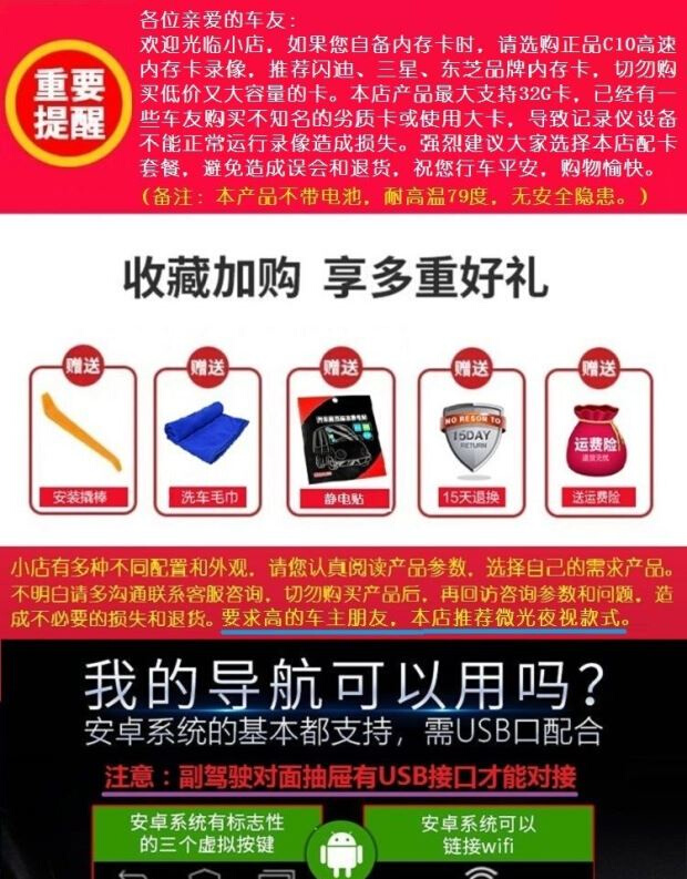 Android большой экран USB -рекордер AR Real -View Navigation High -Definition Night View Сингл двойной линз передний и задний