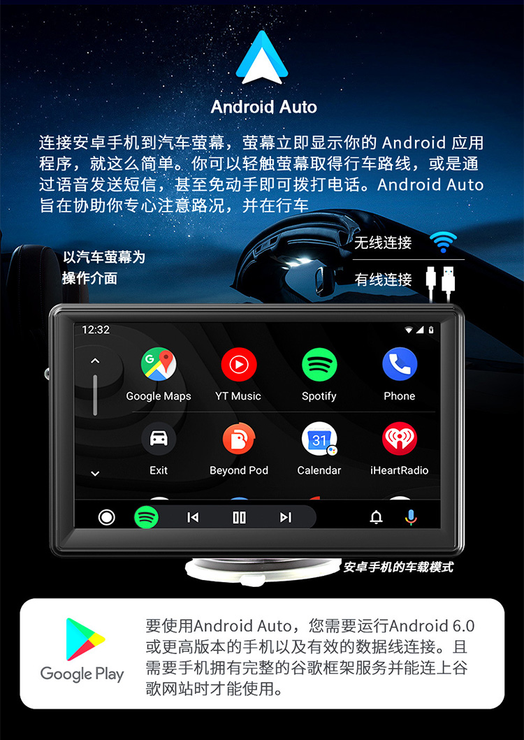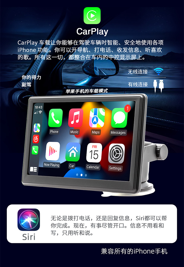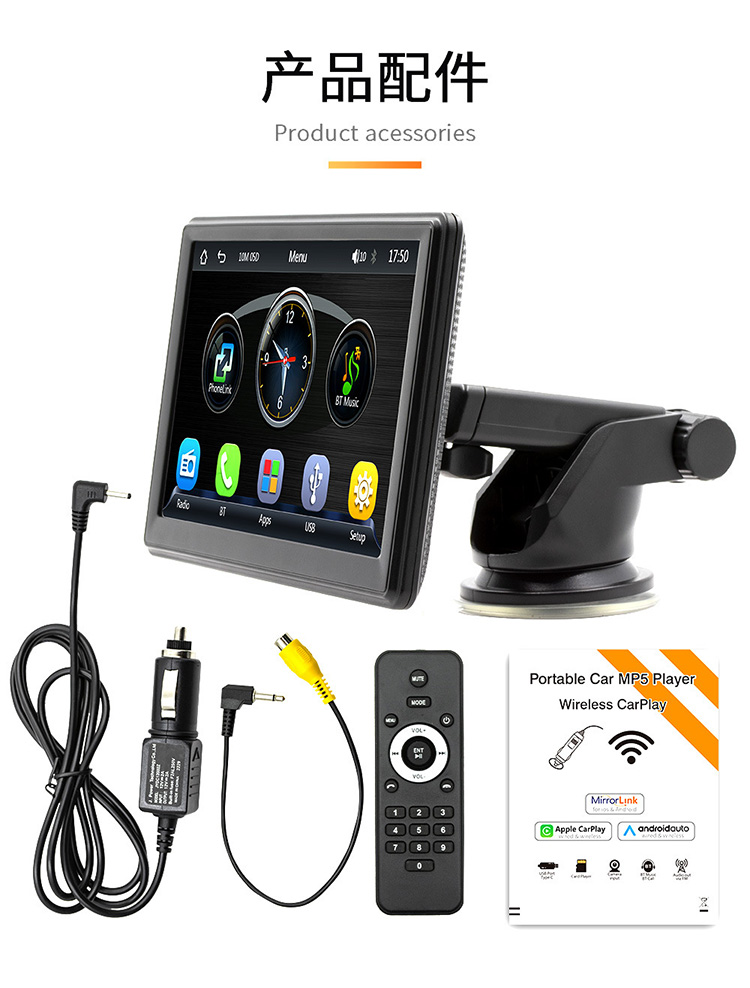 7 -INCH MACHINE Беспроводная CarPlay Portable High -Definition High -Definition Display Bluetooth -Free General Truck