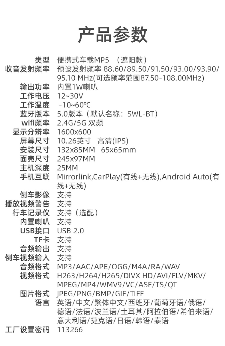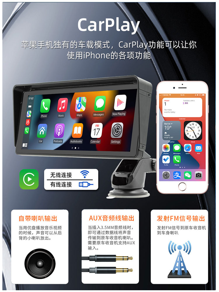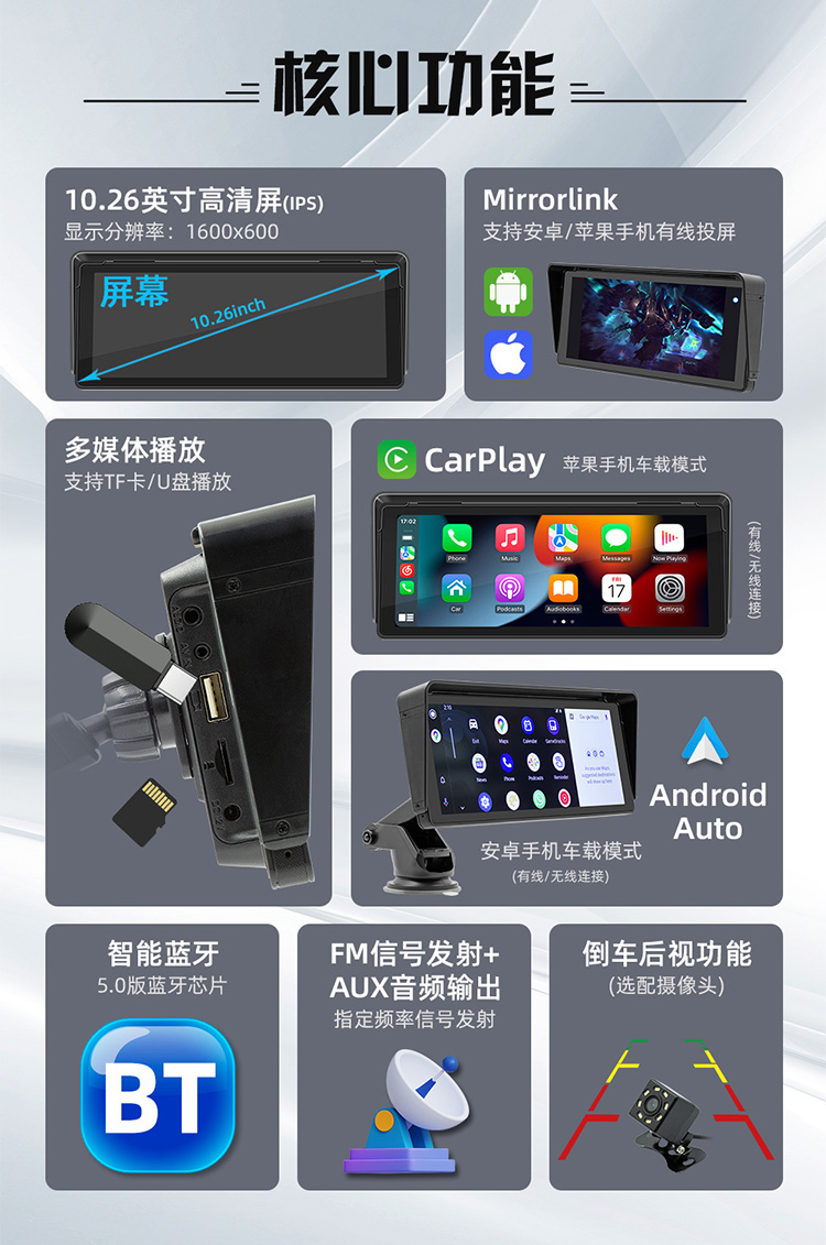 Центральная консоль Apple Беспроводная CarPlay Cast Screen Navigation Bluetooth High -Definition High -Definition обратное изображение 10.2 -INCH Экран IPS