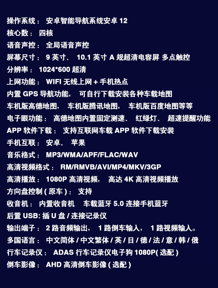 | Цвет: | 9-дюймовая навигация GAODE, 9-дюймовый Gaode + обратное изображение, 9-дюймовый AR Gaode + Front Driving Recorder, 9-дюймовый AR Gaode + передний рекордер + обратное изображение, 9-дюймовый AR GAODE + передний и задний рекордер + обратное изображение, 10,1 -дюймовая навигация GAODE, 10,1 дюйма Gaode + обратное изображение, 10,1-дюймовый AR Gaode+Front Driving Recorder, 10,1-дюймовый AR Gaode + передний рекордер + обратное изображение, 10,1-дюймовый AR GAODE + передний и задний рекордер + обратное изображение |
