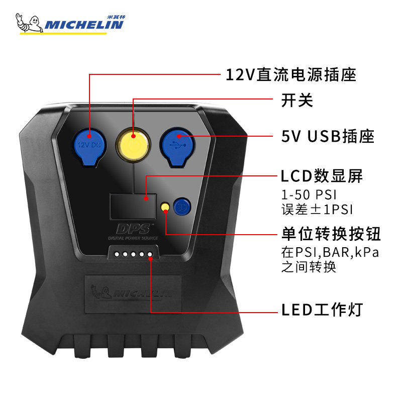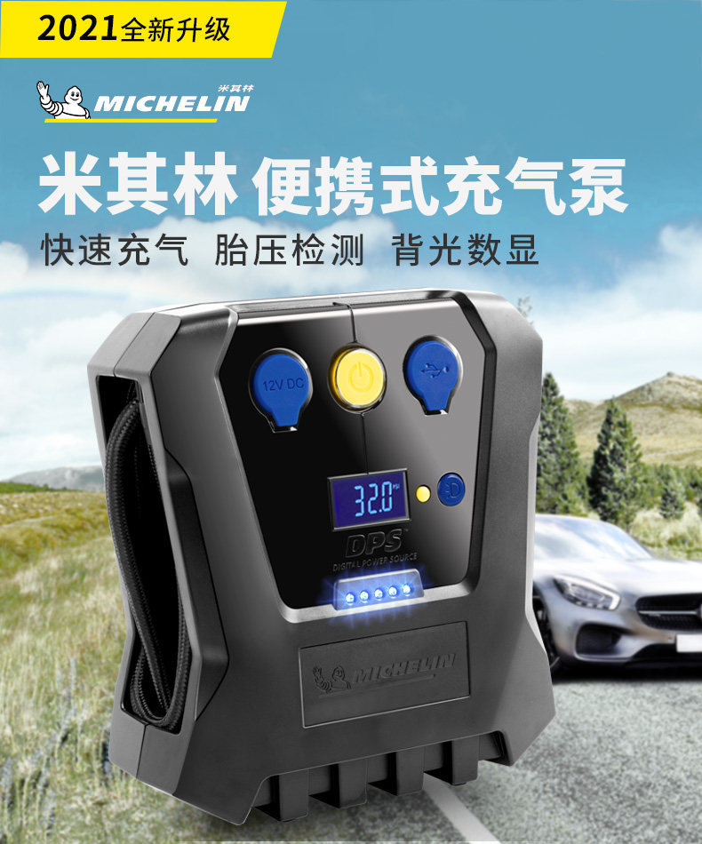- 【1】Воздушный насос Michelin【Быстрая накачка и точное измерение давления в шинах】