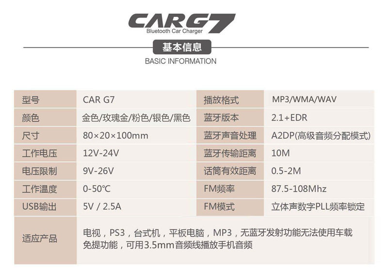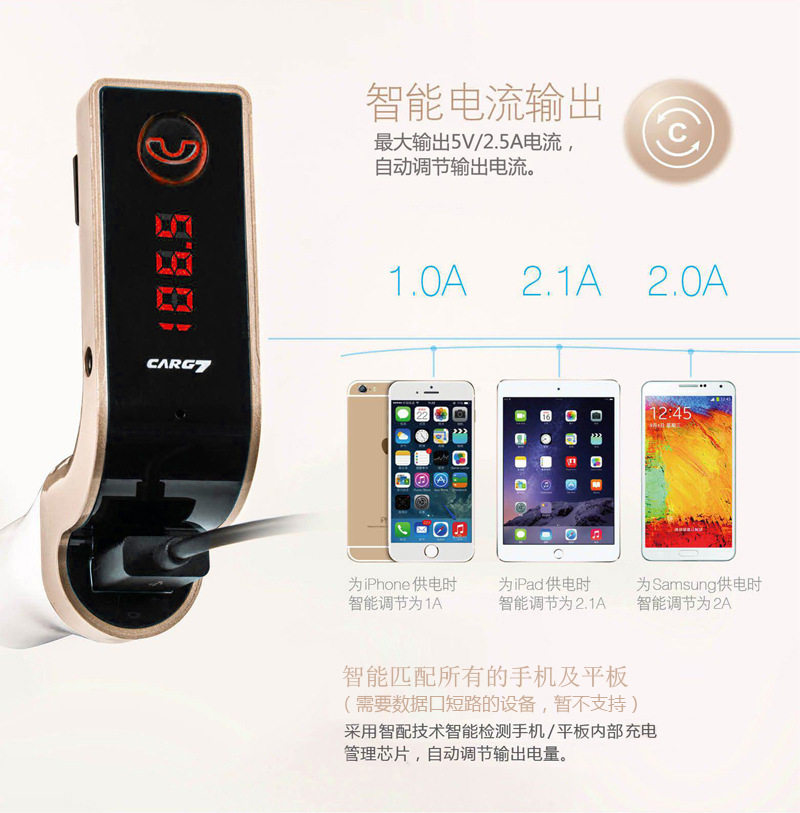 Оригинальный автомобиль G7 Car Car Mp3 Bluetooth Player Bluetooth Carer Charger