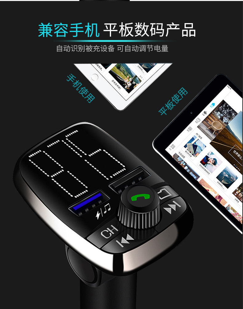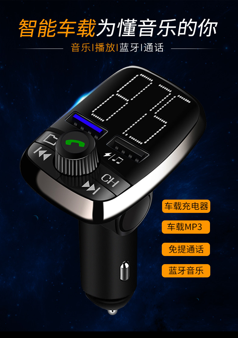 Автомобиль MP3 -плеер Многофункциональный Bluetooth -приемник не -прозрачная музыка инвестировала сигарет легкое быстрое зарядное устройство