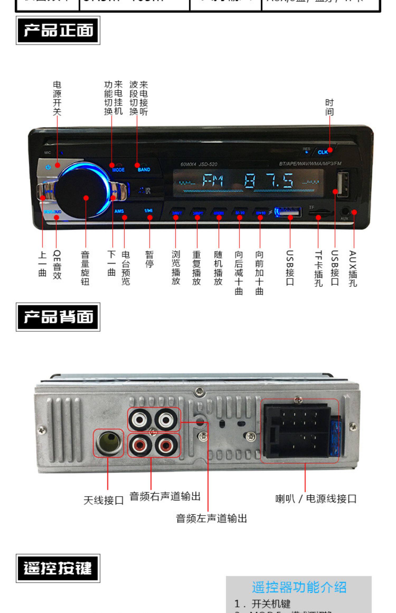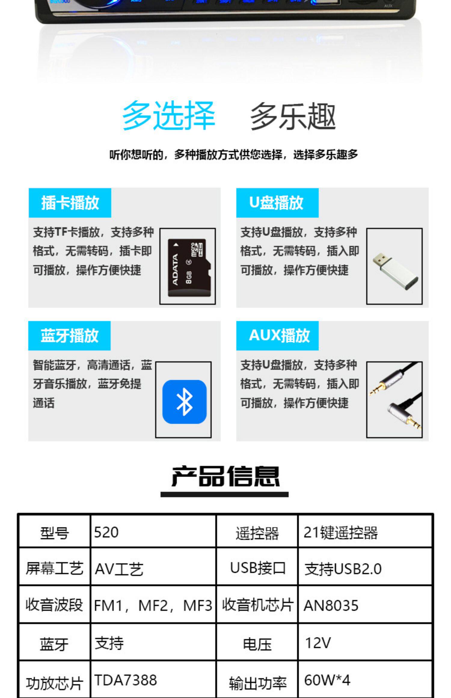Автомобиль MP3 Player 5.0 Bluetooth Phone Plug -In Radio Dual USB High -Power Car Audio Multi -function