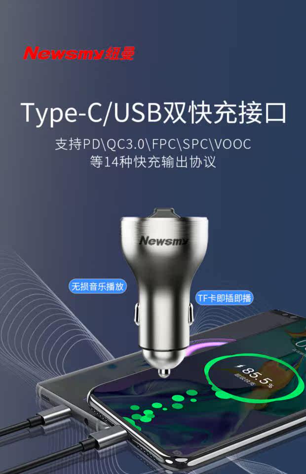 Newman C2 Обновляемая версия автомобиля Mp3 Bluetooth TF Card Non -Destructive Music Player PD Multi -Протокол Super Fast Charging QC3
