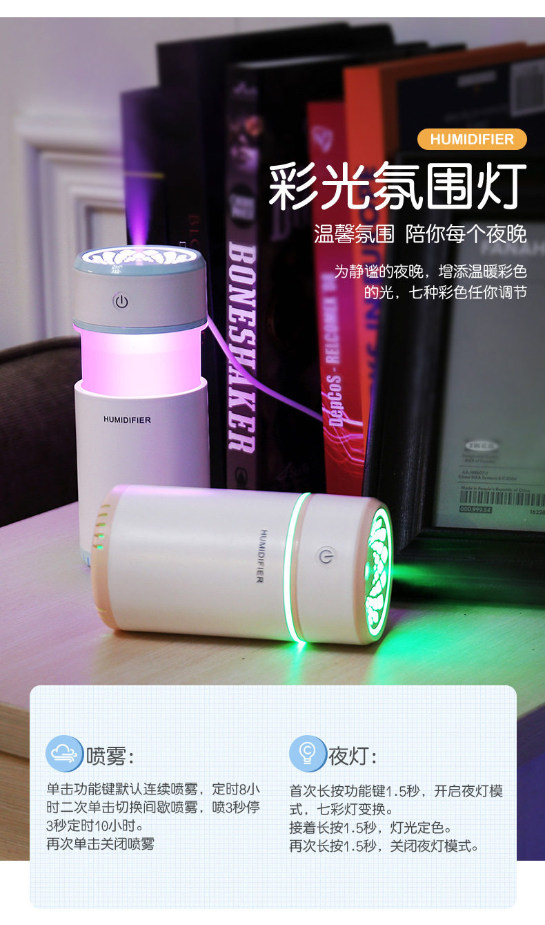Увлажнитель воздуха для авто, беззвучный спрей, очиститель воздуха, светильник