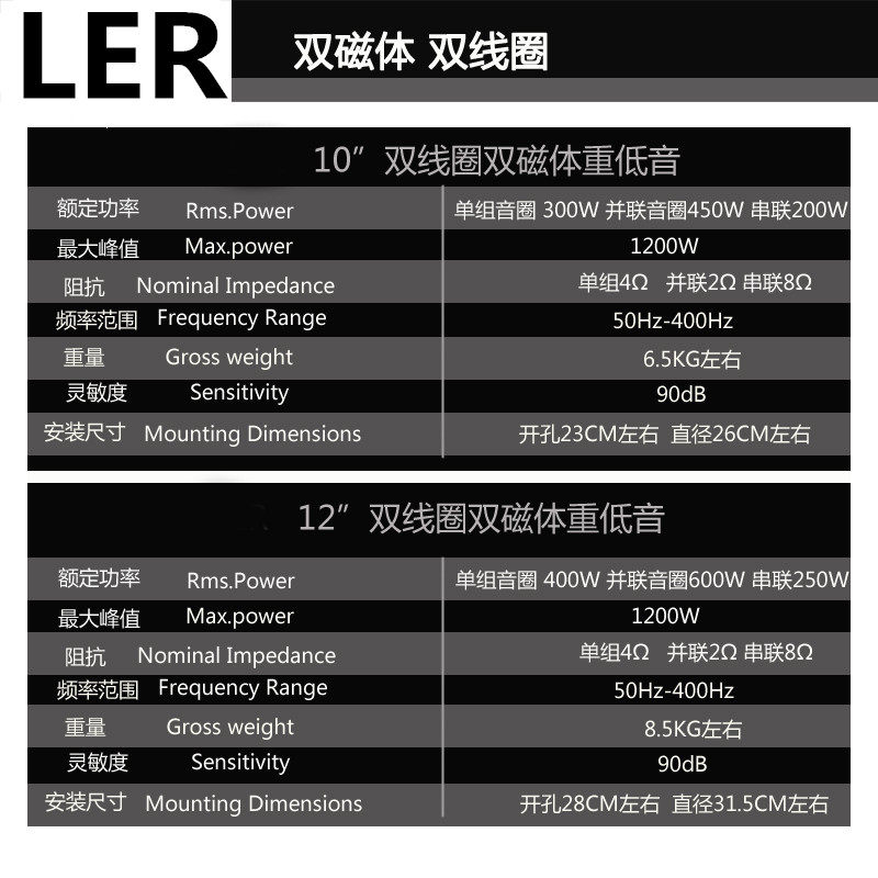 Автомобиль 10 -INCH, 12 -дюймовый высокий, пассивный, необеспеченный сабвуфер WUDI CAR Двойной катушки модификация звука