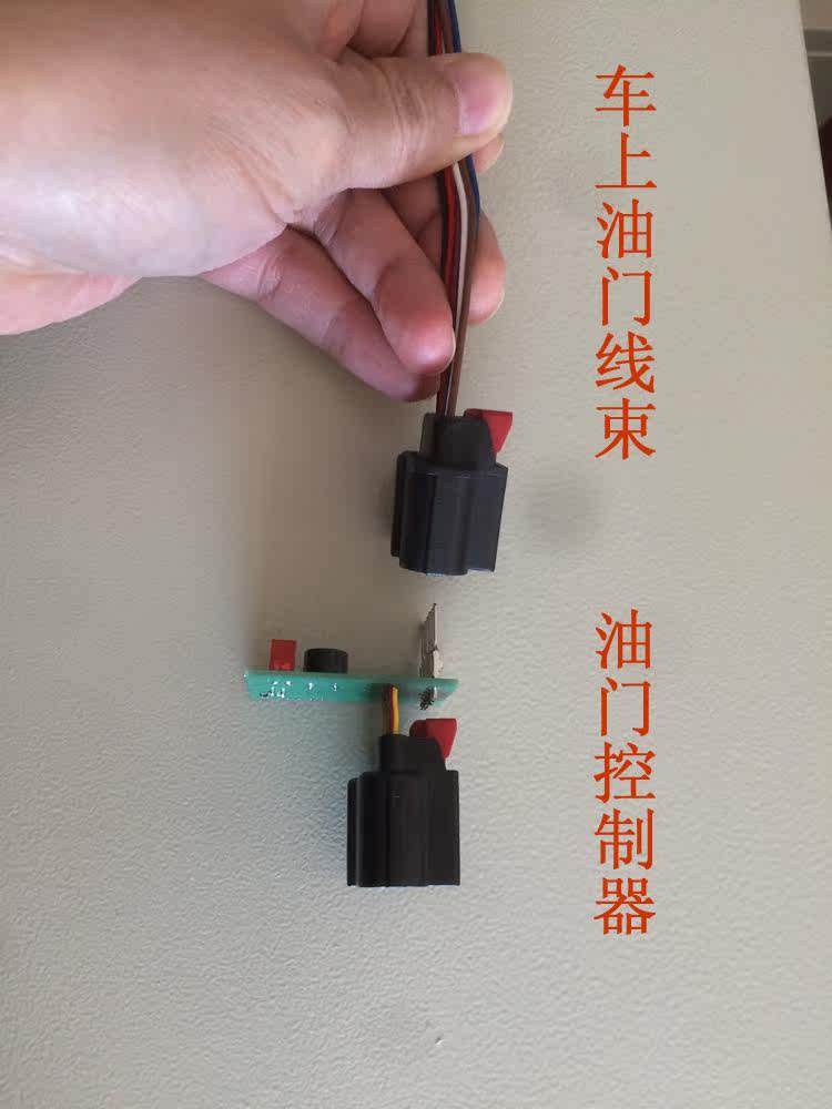 5. Вставьте черную пробку контроллера дроссельной заслонки в гнездо педали дроссельной заслонки, вставьте к концу и нажмите красную блокировку.