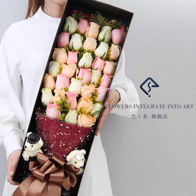 Подарочная коробка, цветочный магазин, розы, подарок на день рождения, букет